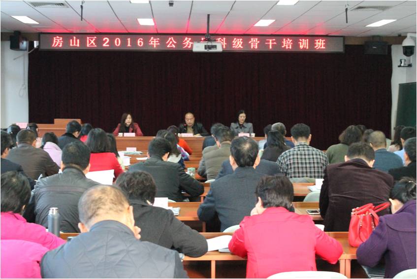 为深入贯彻党的十八届四、五中全会和习近平总书记系列重要讲话精神,进一步提高房山区公务员科级骨干队伍的业务素质和水平,分别于11月14日至18日、11月21日至25日,在人力资源和社会保障局与我校联合举办两期2016年公务员科级骨干培训班。每期5天,全区65个单位的174名公务员科级干部参加了培训。此次培训涉及五大发展理念、领导干部心理调适、京津冀协同发展、中国传统文化等内容。学员表示,本次培训拓宽了思路、开阔了视野、增长了知识、更新了理念,进一步提升了综合素质和办事能力。